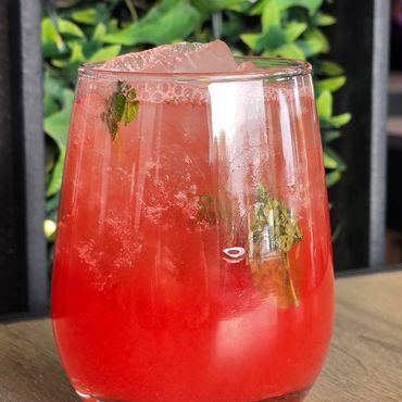 A fresh blend of Pinot Grigio, strawberry purée, and mint, topped with champagne. Light, bubbly, and perfect for patio sipping.